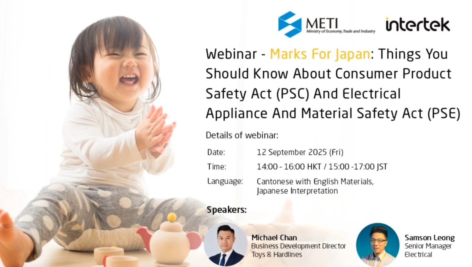 Greater China recently collaborated with the Ministry of Economy, Trade and Industry of Japan (METI) to organise two insightful webinars themed "Marks for Japan: Things You Should Know About Consumer Product Safety Act (PSC) And Electrical Appliance and Material Safety Act (PSE)".
